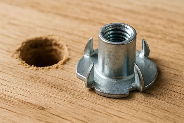 - Plaatsing: Positioneer de inslagmoer in het voorgeboorde gat, waarbij de flens volledig vlak op het hout ligt.